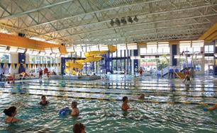 Cove Aquatic Center offers an indoor aquatic facility with two enclosed tube slides, water pool with jets, sunning decks, diving pool and eight 25-yard lap lanes for competition or exercise. Amenities include locker rooms and concessions.