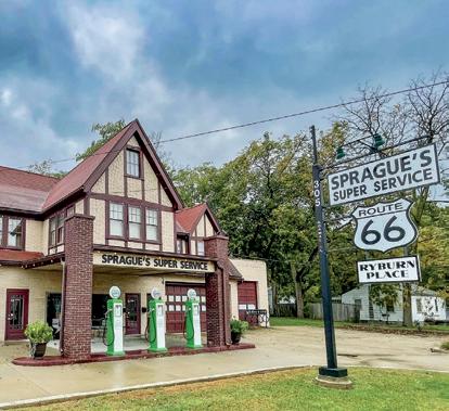 Many road trippers get their first kicks on 66 at Lou Mitchell’s Restaurant , a diner on Jackson Boulevard in downtown Chicago, just west of the famed road’s starting point. “Serving the world’s finest coffee,” as its sign proclaims, the breakfast/ lunch favorite has been dishing up comfort food since 1923. If you wait for a food stop outside of the city, consider a fried chicken meal at Dell Rhea’s Chicken Basket in suburban Willowbrook or White Fence Farm in Romeoville, both filled with Route 66 and other memorabilia. In Joliet, stop at Rich & Creamy for a cold treat or take a tour of the Old Joliet Prison , which appeared in The Blues Brothers movie. In Pontiac , Mother Road enthusiasts flock to the free-admission Route 66 Association Hall of Fame and Museum and ogle classic cars at the PontiacOakland Automobile Museum . The place of pilgrimage for Route 66 fans in Bloomington-Normal is Ryburn Place , a vintage gas station turned gift shop. The town of Atlanta recently unveiled the