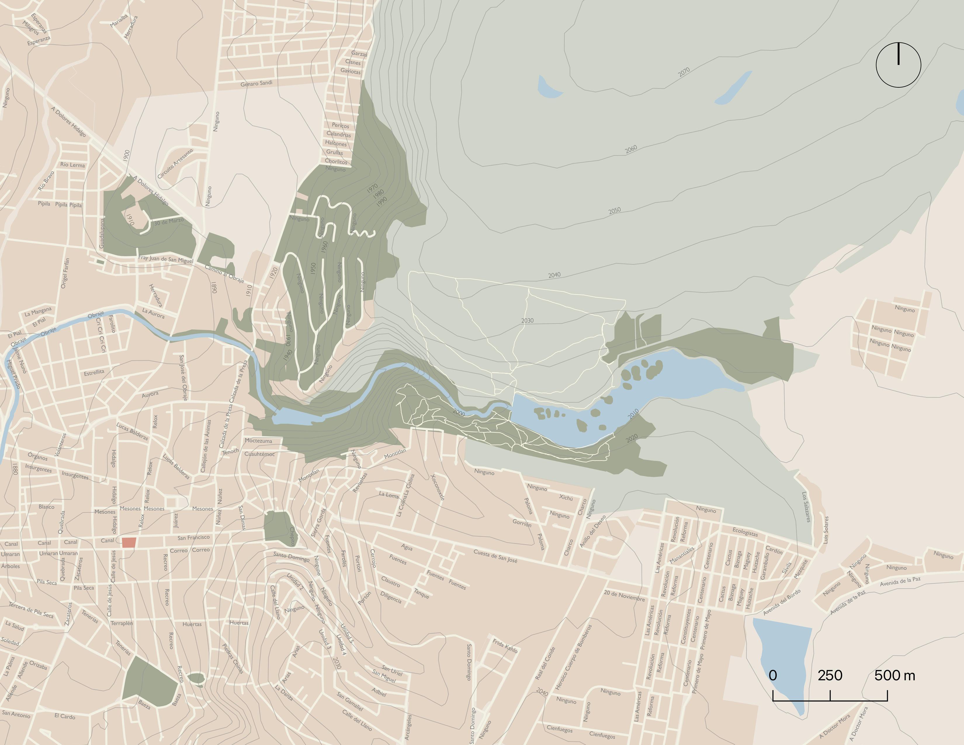 Calles Áreas verdes Manzanas Cuerpos de agua