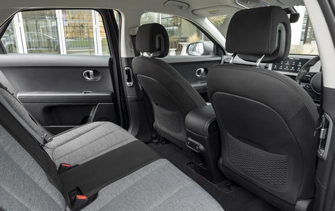 Keeping things simple, the Ioniq 5 is available in just three trims, with combinations of battery and powertrains encompassed in those. The entry level Premium is the only model on which the 58kWh battery can be specified. Priced from £41,650, standard kit includes 19-inch alloy wheels, dualzone climate control, electric driver’s seat adjustment, an electric tailgate, heated front seats, LED projector headlamps, partleather upholstery, a sliding centre console, and smart cruise control. As tested here, the 77kWh AWD Ioniq 5 costs £48,650.
