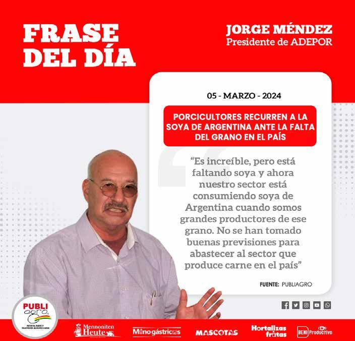 “Es increíble pero está faltando soya y ahora nuestro sector está consumiendo soya de Argentina cuando somos grandes productores de ese grano. No se han tomado buenas previsiones para abastecer al sector que produce carne en el país”, dijo Méndez.
