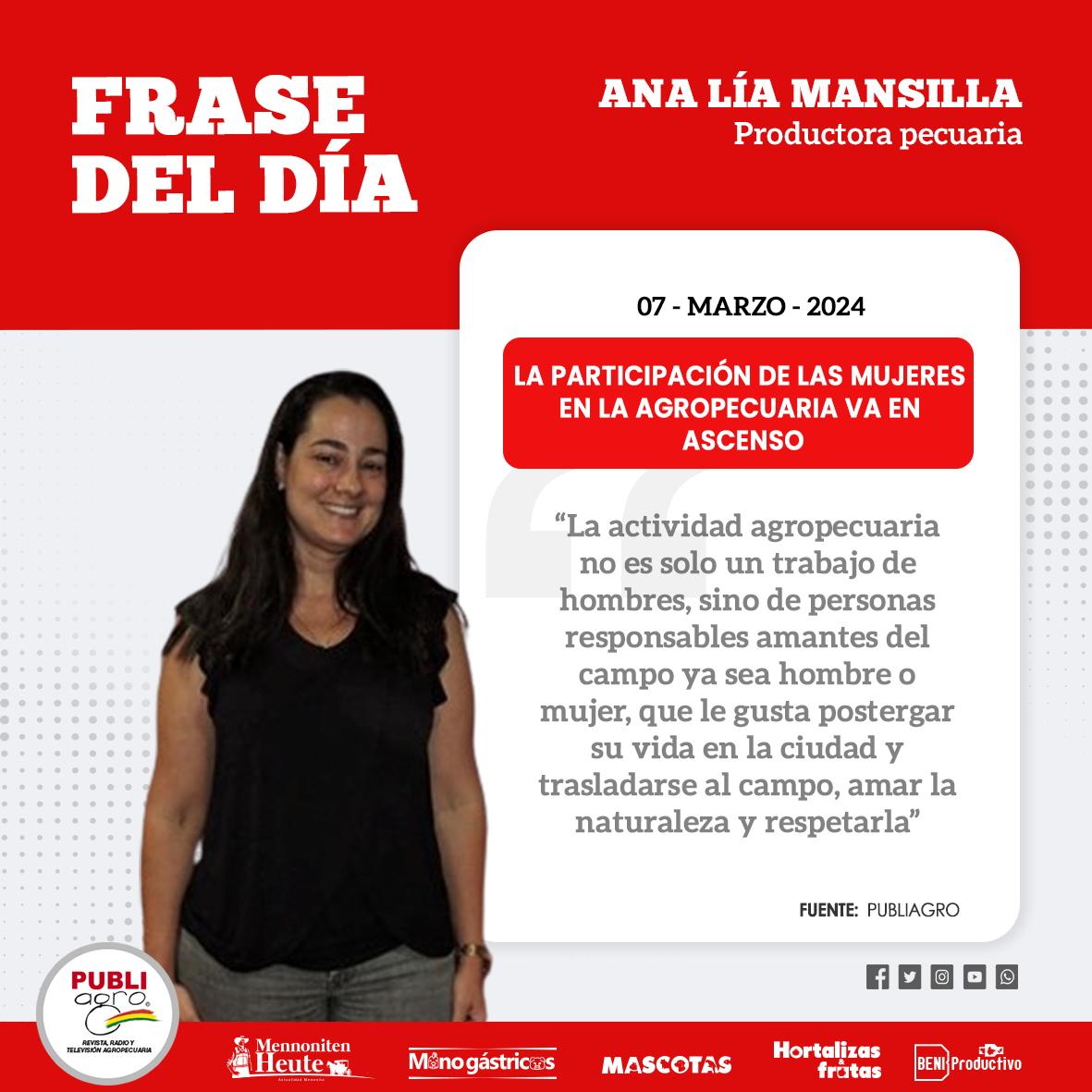 personas que entienden el trabajo pecuario, como uno de sus tíos que las asesoró en la toma de decisiones. El personal de la hacienda, junto a nuevos funcionarios, también ayudaron a salir adelante a las nuevas emprendedoras que ahora tienen un nuevo pensamiento: “La actividad agropecuaria no es solo un trabajo de hombres, sino de personas responsables amantes del campo ya sea hombre o mujer, que le gusta postergar su vida en la ciudad y trasladarse al campo, amar la naturaleza y respetarla”, apuntó Ana Lía.