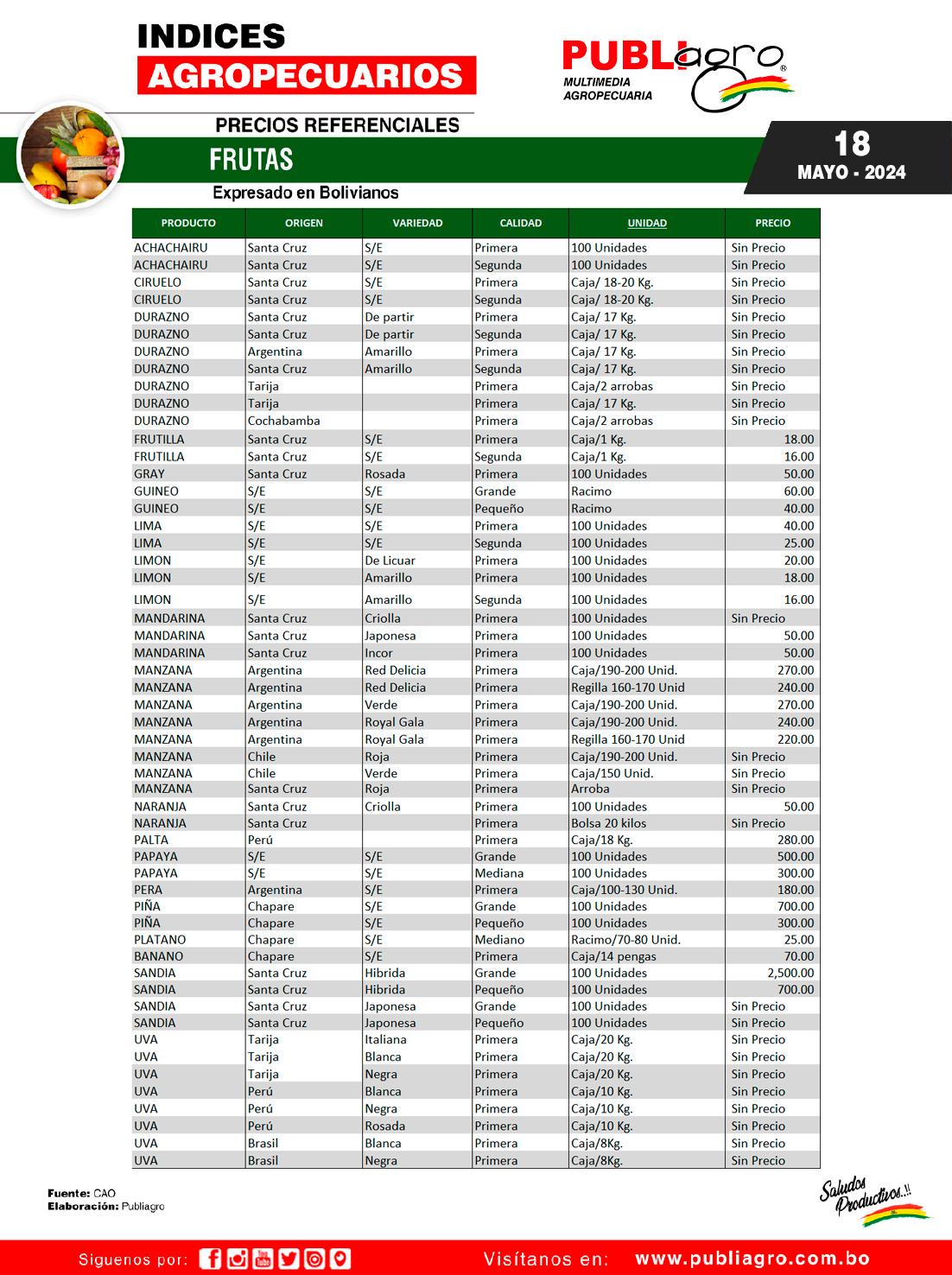 ron presionados a la baja por diversos factores externos, como la abundante cosecha en Brasil, la recuperación en Argentina, una siembra relativamente normal en Estados Unidos y una demanda moderada por parte de China. En el caso específico de Bolivia, dos factores fueron determinantes para definir el precio de los productos agrícolas.