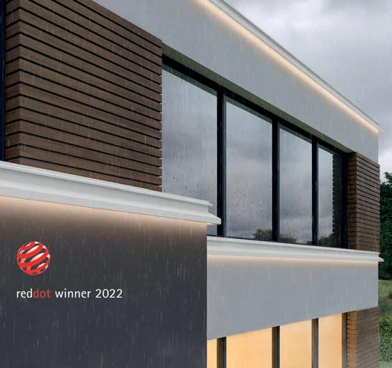 El sistema cuenta con doble método de impermeabilización para evitar la filtración de agua a través del perfil. En su parte inferior el perfil dispone de un hueco donde de forma opcional puede instalarse una tira led, lo que le confiere un alto poder decorativo. Para completar la funcionalidad del sistema, están disponibles los complementos de terminación (ángulo, tapa y unión).