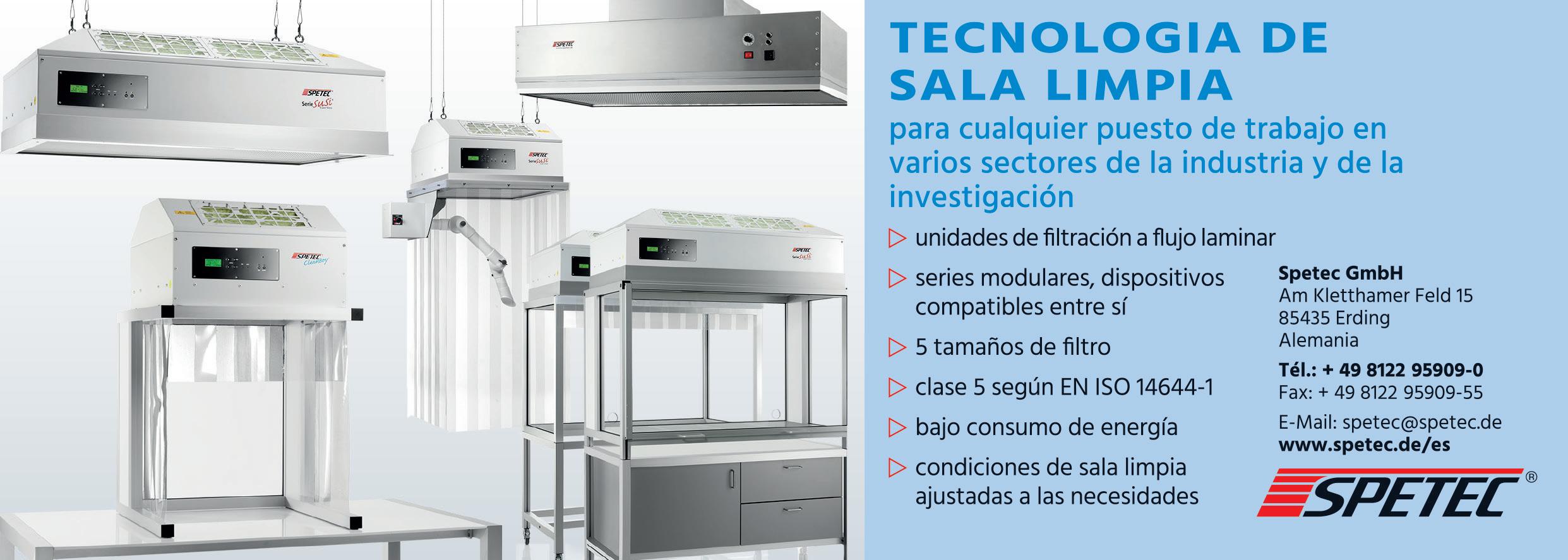do o envasado de productos farmacéuticos, análisis químicos o diagnósticos médicos). La caja de flujo en forma de módulo de techo suspendido con cortina de láminas, por ejemplo, puede colocarse directamente encima de una unidad de envasado o de una máquina de moldeo por inyección para que la producción y el envasado de productos médicos, como jeringuillas o cánulas, sea posible sin partículas ni gérmenes. Combinando salas blancas o cajas de flujo laminar es posible montar líneas de producción enteras para que el producto no pueda entrar en contacto con partículas de ningún tipo en ningún momento del proceso de producción. Así, la instalación o disposición, pero también el diseño de los componentes individuales, puede adaptarse de forma muy variable a las necesidades del cliente. No obstante, los dispositivos de Spetec GmbH no solo aseguran el almacenamiento de los productos sensibles, también se han desarrollados dispositivos de filtración de aire para las oficinas o salas de escuelas para proteger la salud de las personas. La misma tecnología de filtración se encuentra en los productos CleanBoy Office, dispositivo móvil sobre rodillos y FMS Office, que se suspende del techo. Ambos sistemas crean un clima interior sin partículas ni aerosoles en el que puede sentirse a salvo por ejemplo de polvo fino, polen e infecciones.
