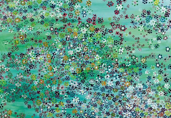 of shield diamonds, including a remarkable 4.02-carat specimen at the centre of a complex structure made up of broken lines. The effects of perspective and interplays of relief are multiplied throughout, while light vibrates and circulates.