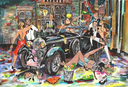 A-L put the picture on Facebook, tagged a bunch of her car clients and friends, and was inundated with requests from people asking her to paint their cars. “I had one client in Switzerland who commissioned 30 original paintings and they are all hanging in his garage. He loves the reactions they provoke. Recently, I had a stand at Salon Privé. I had all my reportage paintings of Monaco up on the wall but put some unframed naughty ones in a browser so people could see them and, surprisingly, they were incredibly popular. People are very amused by them. They are not too rude, just a bit of cheeky fun.”