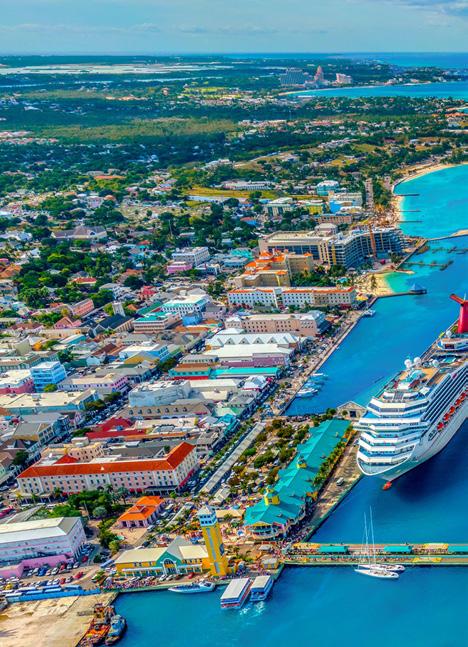 Above: The port in Nassau, New Providence is often packed with cruise liners. In the far distance is the mega resort Baha Ma