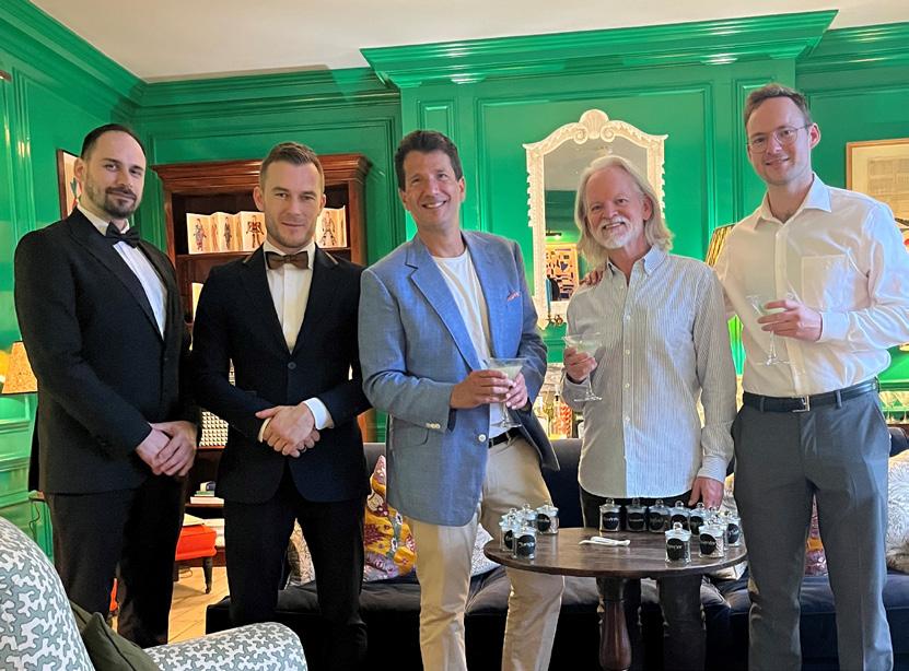 of the royal dress maker Sir Hardy Amies, who was there for decades. It’s a magnificent building and we are delighted to have access to the Green Room there for our gin events, including our Savile Row Gin Experience. Guests come into the Green Room, listen to a talk about the making of a bespoke suit by the head cutters at Hackett, they then see some cocktail-making magic with Michal, our head mixologist, and his team. Then it’s gin-making time. The guests get to choose their botanicals, put everything into the mini stills and see the gin coming out. People then leave the Savile