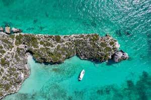 If you like to dive, head over to West Caicos for some of the clearest ocean water in Turks and Caicos. This area has jaw-dropping submerged plateaus, and the edges of these plateaus or walls—as they are commonly referred to—typically feature sheer and abrupt depth changes from 30–60 feet (9–18 m) at the top of the wall to great depths below.