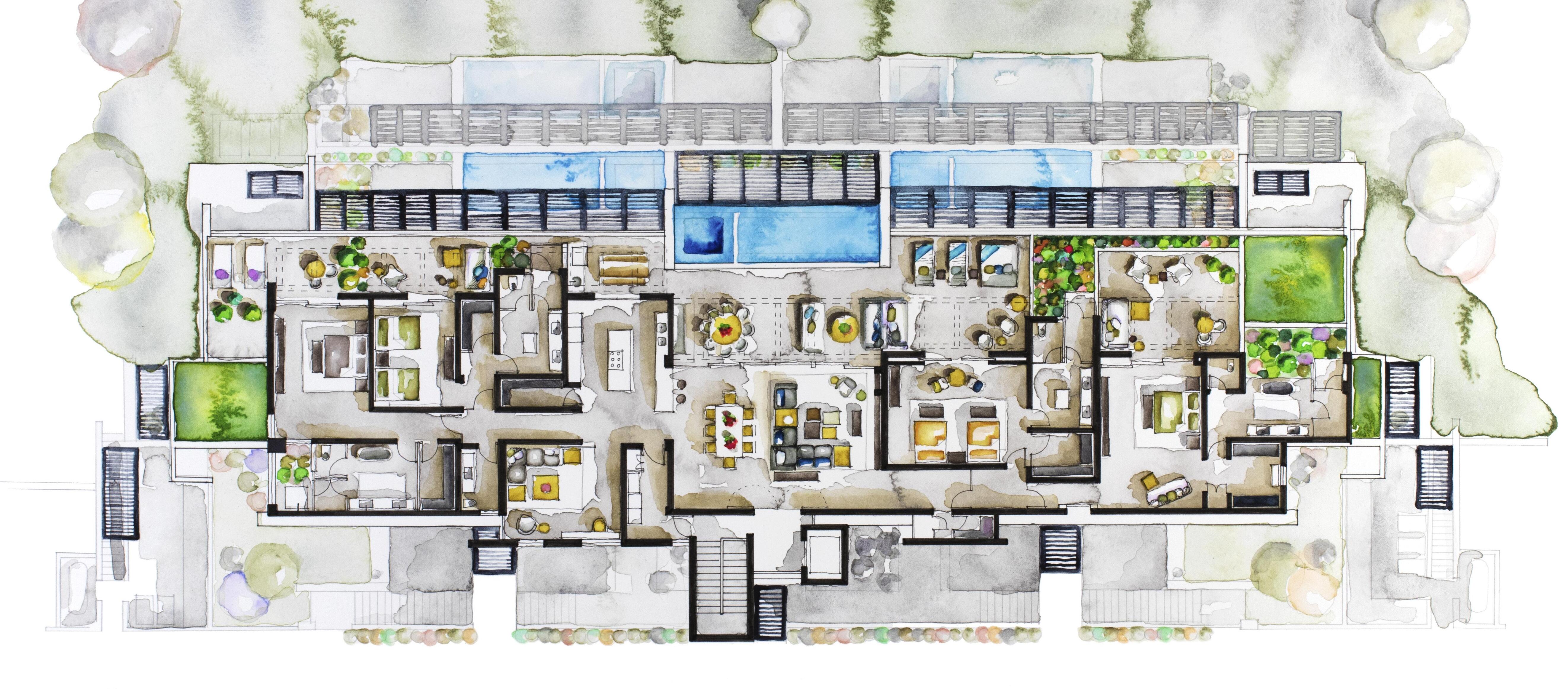 This beachfront, two-story retreat is reserved for the family who wants it all. Within Grand Reserve, you will discover five impeccably designed bedrooms with walk-in closets, multiple spa-inspired bathrooms, private terraces, a personal gym, and refreshing plunge pools. Thoughtfully appointed indoor and outdoor lounges, a fully equipped kitchen, and an open-air dining area create the perfect setting to unwind with family and friends, all while immersed in the stunning natural beauty of the sea and surrounding landscape.