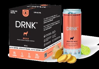 Our handcrafted recipes stay true to the flavour profile providing the same great taste as their cocktail counterparts, without the alcohol or added sugars. DRNK is focused on creating great-tasting mocktails made with allnatural ingredients, no artificial preservatives, and are low in sugar and low-calorie.