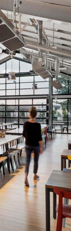 ↑ The operable greenhouse roof brings natural light and air into the center atrium of the McClintock Building, creating a confortable social and work center