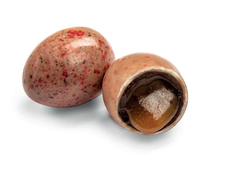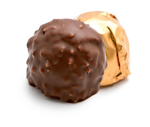 • MILK PUFFED CEREAL BALL, a light and crispy puffed cereal coated in milk chocolate