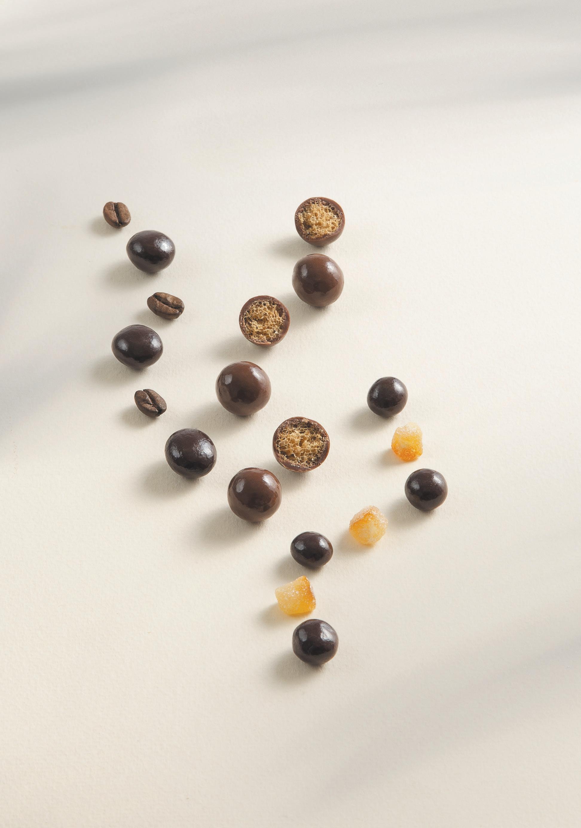 • DARK COFFEE BEAN, an Arabica coffee bean from Brazil coated in dark chocolate