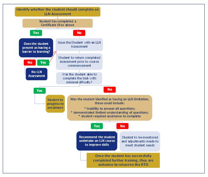 All students undertaking training are required to undertake an LLN Assessment, unless the student currently holds a Certificate III qualification or above or can demonstrate equivalent industry experience;