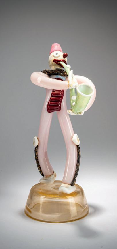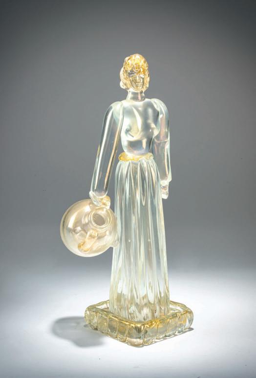 H. 38 cm. Ausführung: Barovier & Toso. Farbloses Glas, partiell mit eingeschmolzener Silberfolie, partiell mit aufgeschmolzener Goldfolie.