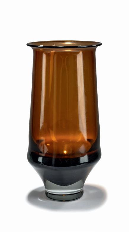 H. 31,5 cm. Ausführung: Barovier & Toso. Farbloses Überfangglas, vertikal gerippt mit unregelmäßigen Luftblasen; große, umlaufend aufgeschmolzene Nuppen.