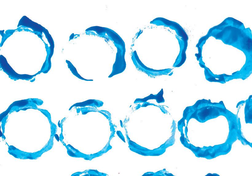 Colora la balena stampando con il tappo del pennarello intinto nella tempera blu.
