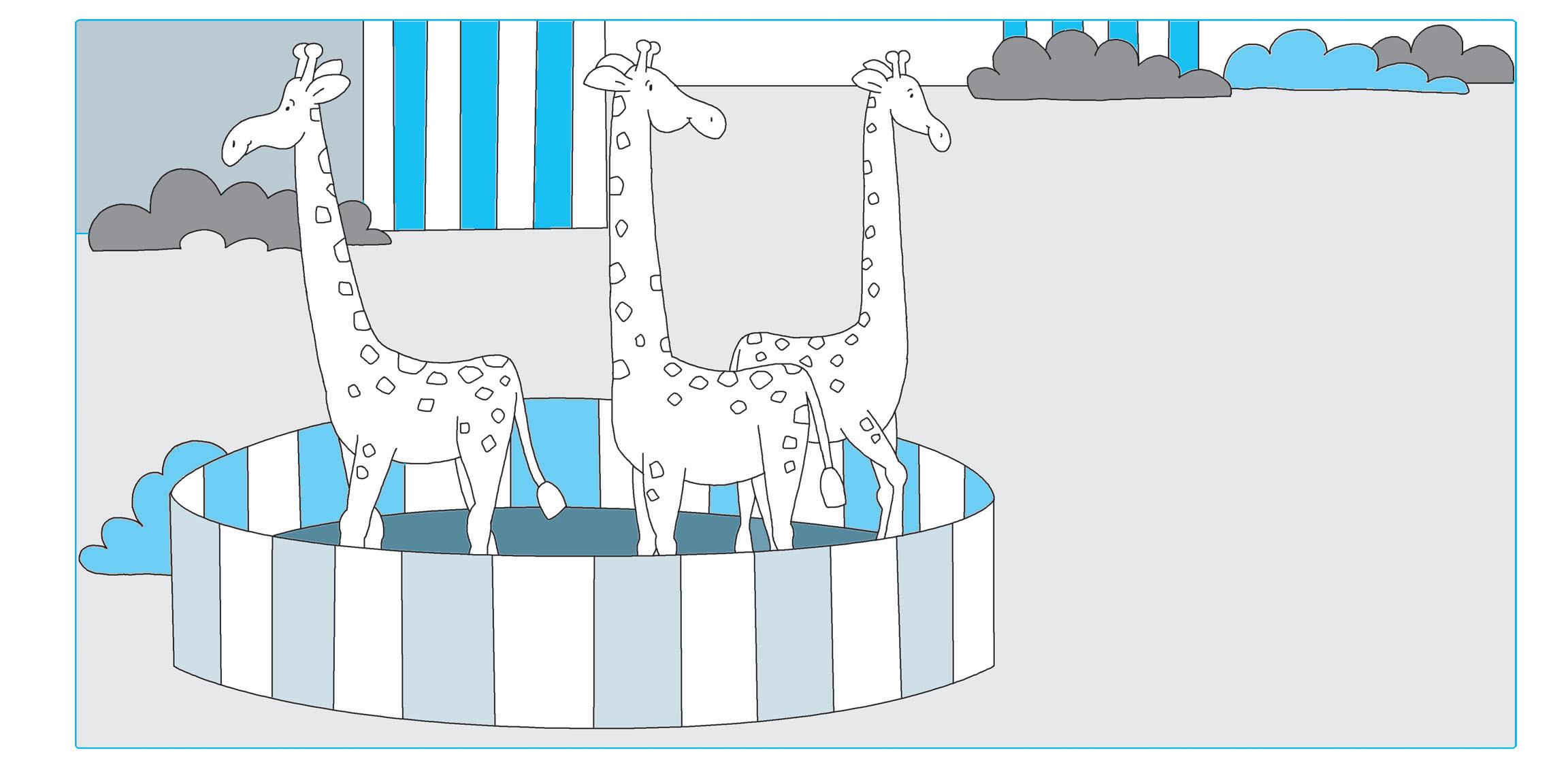 COLORA LE GIRAFFE DENTRO IL RECINTO. DISEGNA UNA GIRAFFA FUORI DAL RECINTO.
