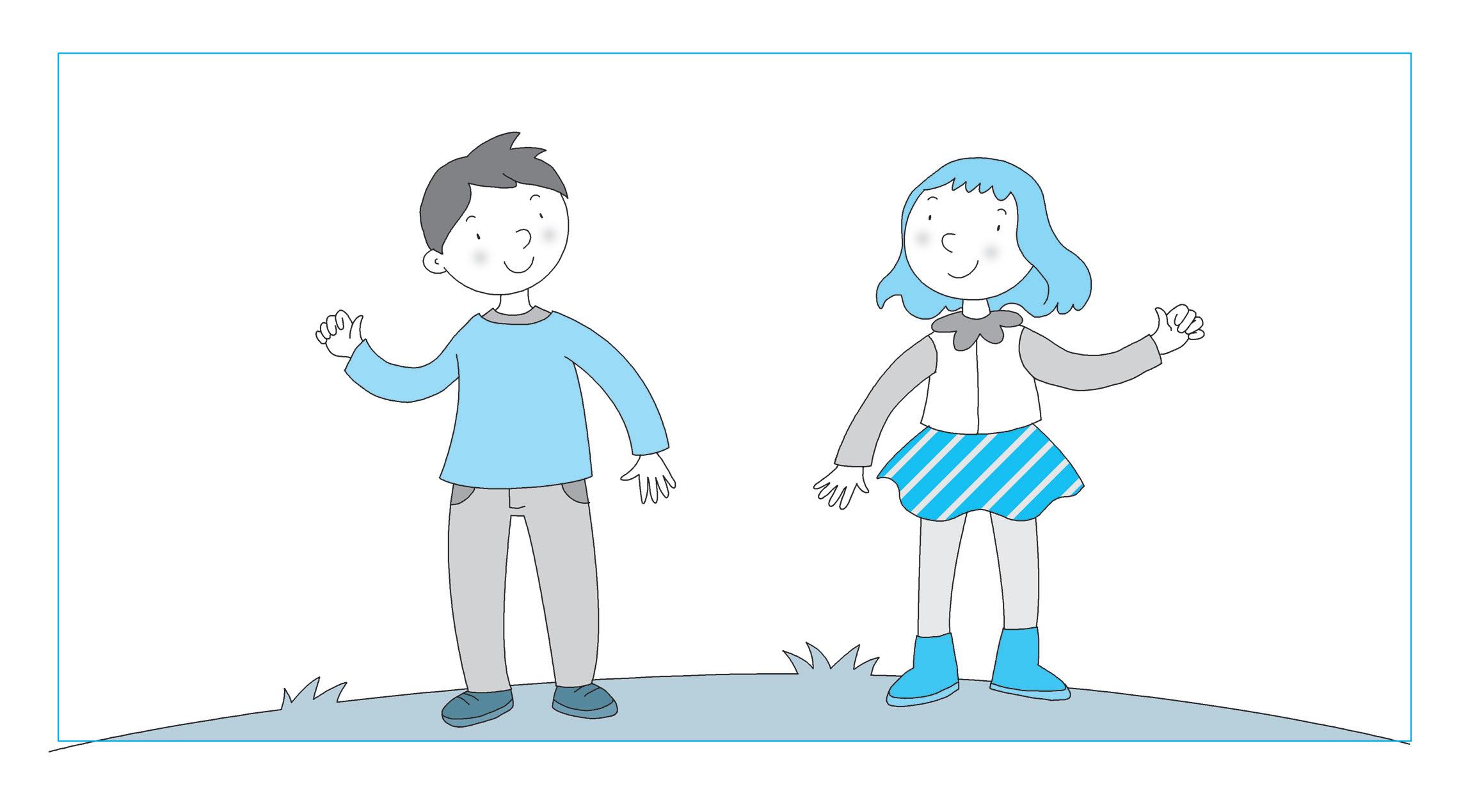 DISEGNA: UN AQUILONE NELLA MANO DESTRA DI MARCO; UN PALLONCINO NELLA MANO SINISTRA DI ANNA.