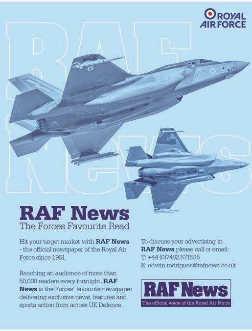 Subscriptions and distribution: RAF News Subscriptions c/o Intermedia, Unit 6 e Enterprise Centre, Kelvin Lane, Crawley RH10 9PE Tel: 01293 312191