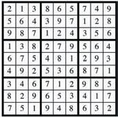 Fill in all the squares in the grid so that each row, each column and each 3x3 square contains all the digits from 1 to 9.