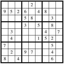 Fill in all the squares in the grid so that each row, each column and each 3x3 square contains all the digits from 1 to 9.