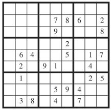 Fill in all the squares in the grid so that each row, each column and each 3x3 square contains all the digits from 1 to 9.