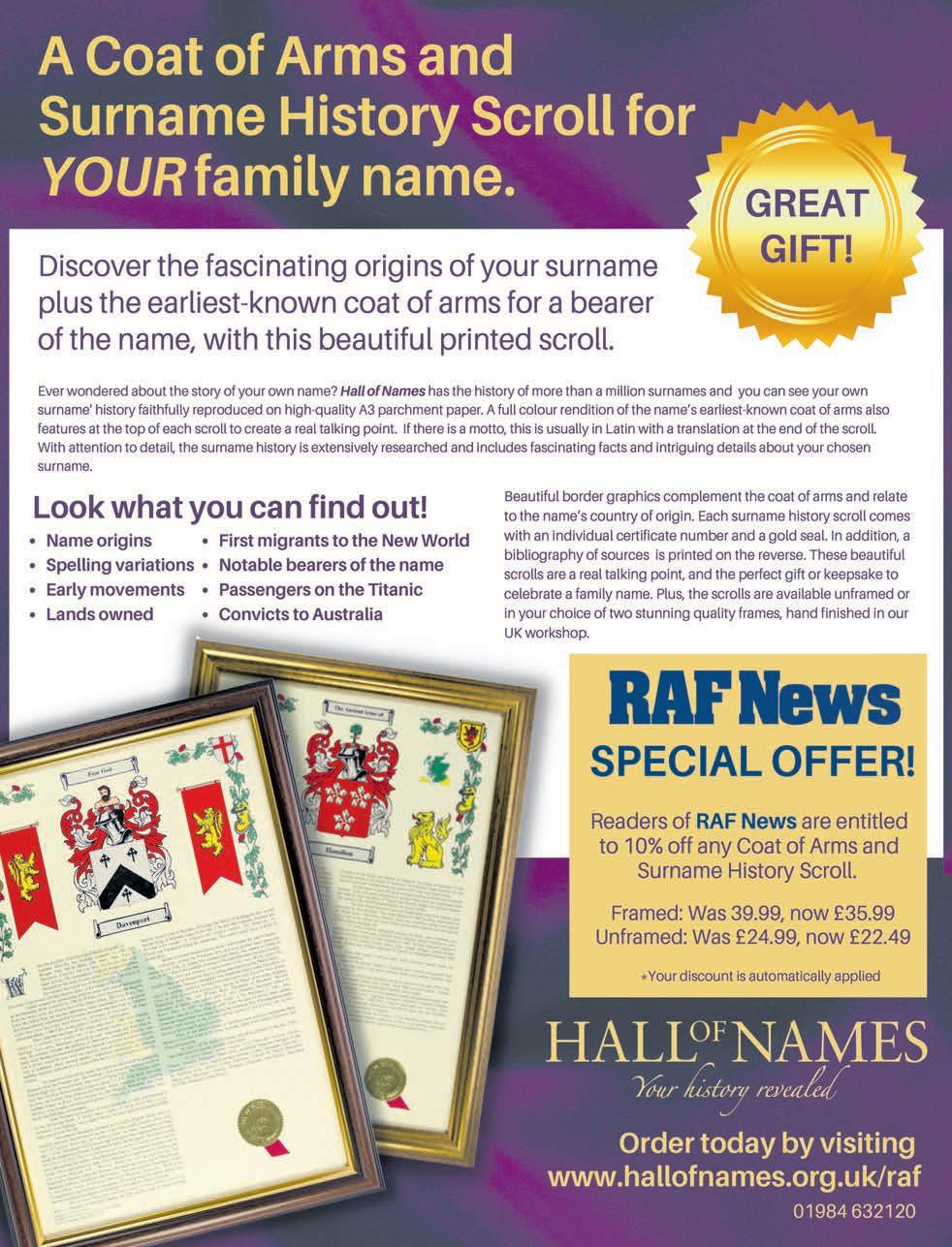 Subscriptions and distribution: RAF News Subscriptions c/o Intermedia, Unit 6 e Enterprise Centre, Kelvin Lane, Crawley RH10 9PE