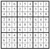 Fill in all the squares in the grid so that each row, each column and each 3x3 square contains all the digits from 1 to 9.
