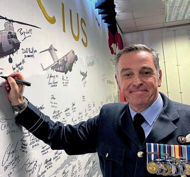 A HERCULES crash survivor who battled flames and exploding live rounds to save other members of the crew trapped in the wreckage signed on at the Cranwell Wall of Honour.