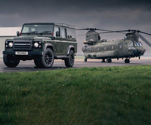 Specialist auto firm TECNIQ rebuilt a Q40 Defender taking design cues from the Chinook for both the vehicle’s interior and exterior.