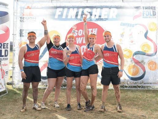 MUDDER MATES: The team celebrate getting to the finish line of the Tough Mudder challenge at Badminton