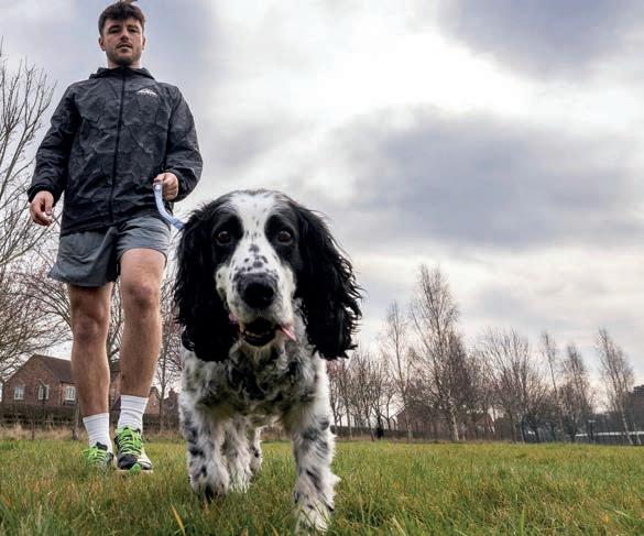 Flt Lt Aaron Eyett is hitting the training circuit with his canine companion Stanley ahead of the Regt officer’s bid to raise funds for an animal charity by completing the London marathon.