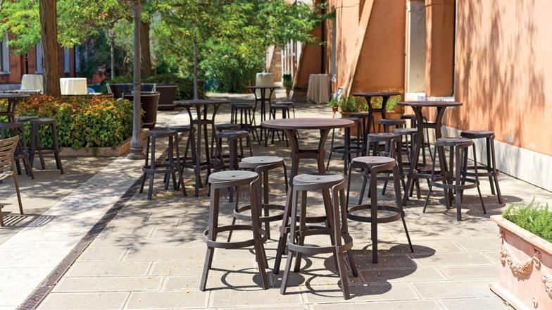 STACK, COMBO. Il tavolo e lo sgabello fanno parte della collezione in plastica riciclata e riciclabile al 100% progettata da Raffaello Galiotto con un disegno lineare e sezioni ad alto spessore. La particolare mescola blend presenta diverse volute striature uniformate dal color Terra, unica cromia, e da una texture grezza opacizzata a effetto vintage. Il colore e la matericità sono il risultato di un lungo lavoro di ricerca dell’azienda per conferire alla plastica rigenerata un aspetto piacevole e ottime caratteristiche tecniche. www.nardioutdoor.com