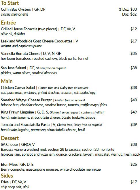 Dining Experience seasonal degustation menu seven days a week. On weekends, you can indulge in High Tea. Bookings are essential.