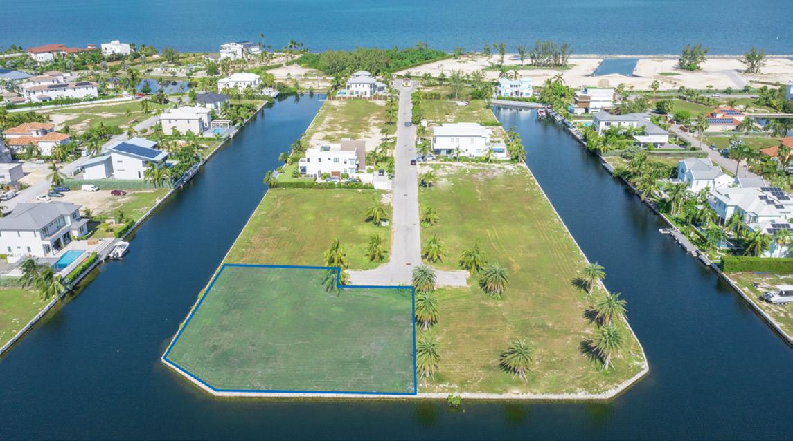 With over 264’ of water frontage at the end of a cul de sac, this corner lot in prestigious, gated Crystal Harbour is protected but features great access to North Sound.