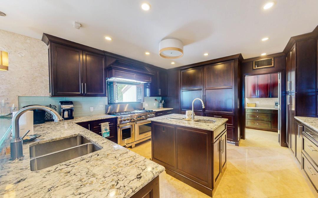 A massive 800’ of beach & Sea frontage with a quiet cove in front, protected by a stone breakwater, and perfect for enjoying paddle boarding, kayaks, snorkeling & swimming. This beachfront area has easy water access, cabanas, BBQ areas, heated Jacuzzi & a very large 170’ long freeform pool with waterfalls & separate kid’s pool & play area.