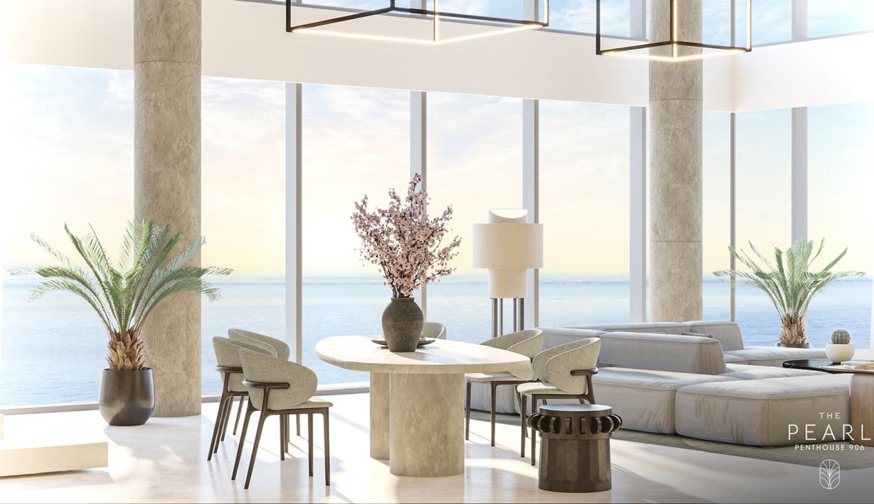The Pearl is a new kind of abode celebrating expansive living with 5 bedrooms, all with spectacular views, walk-in closets and dressing rooms. The family kitchen is a place to gather with sunrise views, equipped with back-ofhouse chef’s kitchen and separate servery, for the utmost privacy. A curved marble bar within your private library invites you at sundown to find peace in your beachfront lounge overlooking the Caribbean Sea. The ultimate space for entertaining with dramatic finishing and creative artful detail.