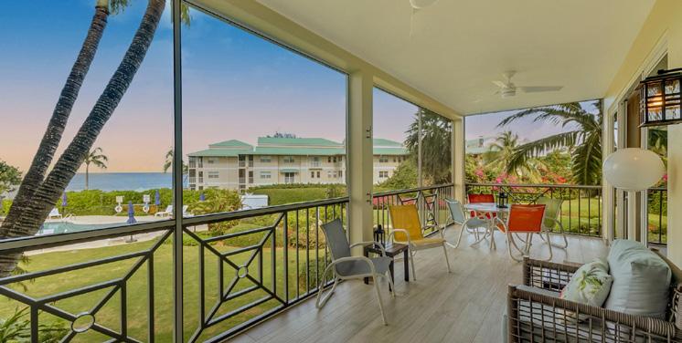 92.5’ of private beach & lush landscaping. A large pool & hot tub are placed right in the sand. An expansive screened porch extends the length of the villa.