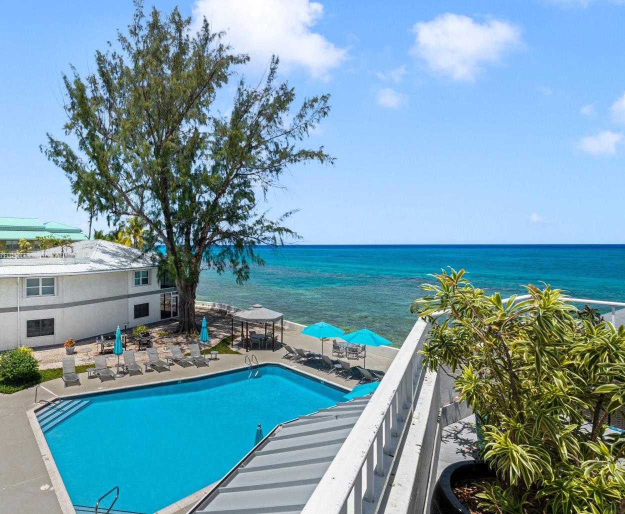 Very rare 3 BR Penthouse with 328 sq. ft. terrace & separate patio. There are only 2 units at Tamarind Bay that feature these terraces. This gorgeous, renovated residence features 3 BRs, all generous in size & two spa-like bathrooms. The terrace, which overlooks both directions of Seven Mile Beach & the pool area, features the best seat in the house for Cayman’s spectacular sunsets. Additional shading could be provided through an electric awning. Perfect for entertaining, the terrace is located off the master suite which features a Murphy bed that can easily be tucked away to create an even larger entertaining area. The residence features stunning porcelain tile floors, white plantation shutters throughout & a modern kitchen with granite countertops & SS appliances. A second patio is located off the open living/dining/kitchen area & the 2nd BR, which also features two full-sized Murphy beds which can easily be tucked away allowing this space to become an office, playroom, yoga area, or more. Beautiful light comes in the 3rd BR with a window that looks straight up Seven Mile Beach showcasing quite a unique view. One of the best locations on Seven Mile Beach, Tamarind Bay features only 28 units with more than 220’ of ocean frontage & includes a beachfront pool, cabanas, BBQ facilities, loungers & umbrellas & a tennis court.