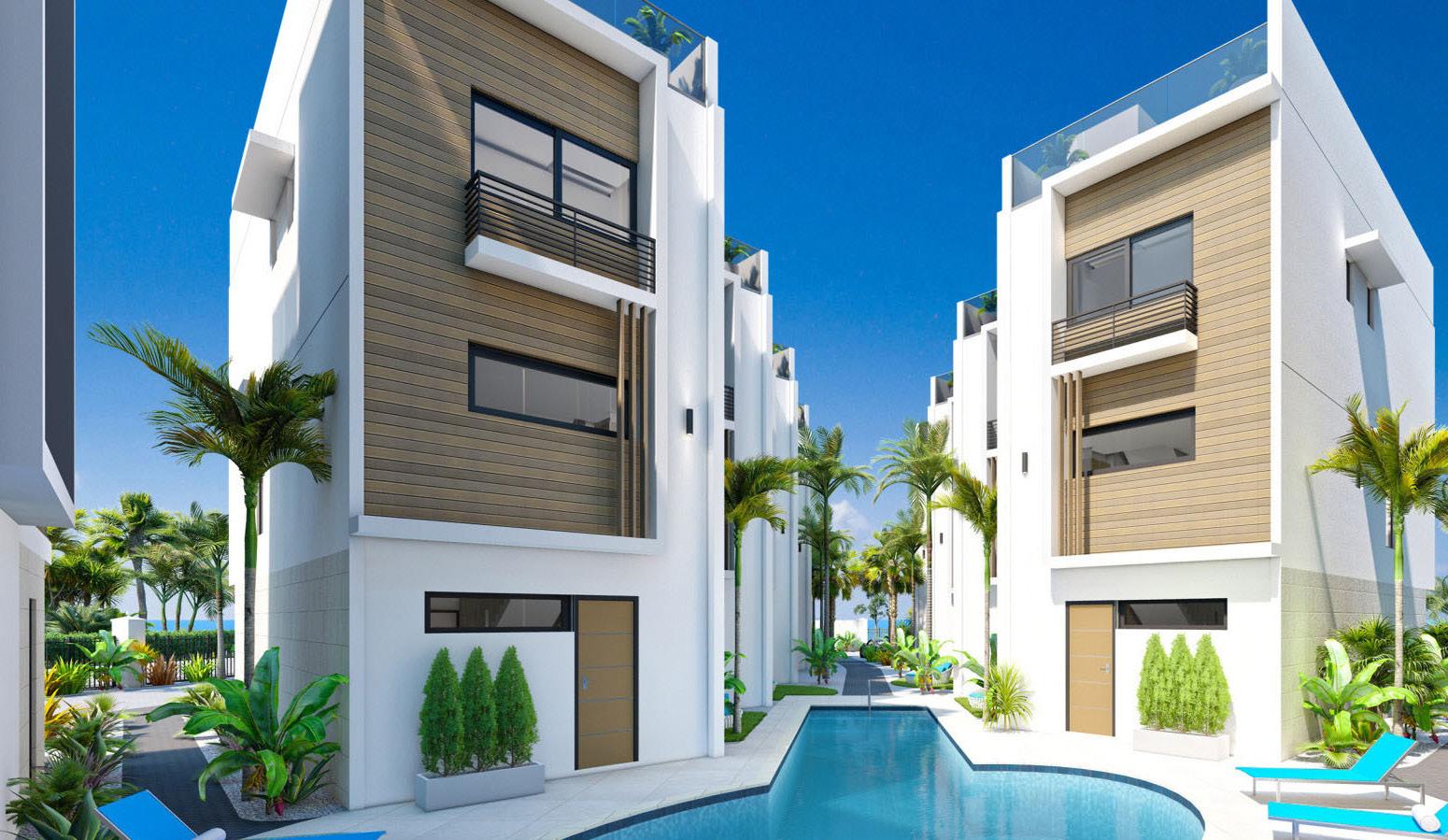 All-new luxury ocean view development. 10% deposit upon signing purchase agreement + an additional 15% in two stages of construction. Balance at completion. These ultra-luxurious residences span 2,900 sq. ft. over 3 levels ALL with ocean views! Designed by award-winning architect Robert Towell, these 22 residences feature huge windows & sliding glass doors to showcase the stunning views, private roof-top terrace, modern design, high end fixtures & finishes, smart technology & enclosed 2-car garage. This gated community features 2 swimming pools, gym, cabana plus 200’ of PRIVATE beach.