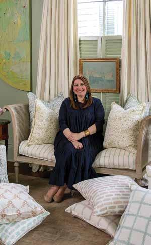 1. Oly Studio Fiona Mirror, available at Villa Vici, 4112 Magazine St., 899-2931, villavici.com 2. Upholstered Armless Chair in velvet by Phantom Hands, available by appointment only at Spruce Wallpaper and Fabric Showroom, 2043 Magazine St., 265-0946, sprucenola. com 3. Pair of Leaf Candle Sconces by Pearce Williams, available at Sunday Shop, 2025 Magazine St., 342-2087, sundayshop.co 4. Les Indiennes Heidi block-print pillow, available at Sunday Shop, 2025 Magazine St., 342-2087, sundayshop.co 5. Flower Power wallpaper by Gary Chapman for EVOLVE, available to the trade at showrooms nationwide 6. Salute bathroom sink in sapphire by Kohler, available at Triton Stone, 6131 River Road, Harahan, 738-2228, tritonstone.com 7. Oakleigh Bar cabinet in green, available at Arhaus, 3301 Veterans Memorial Blvd., Ste. 4, Metairie, 581-6684, arhaus.com