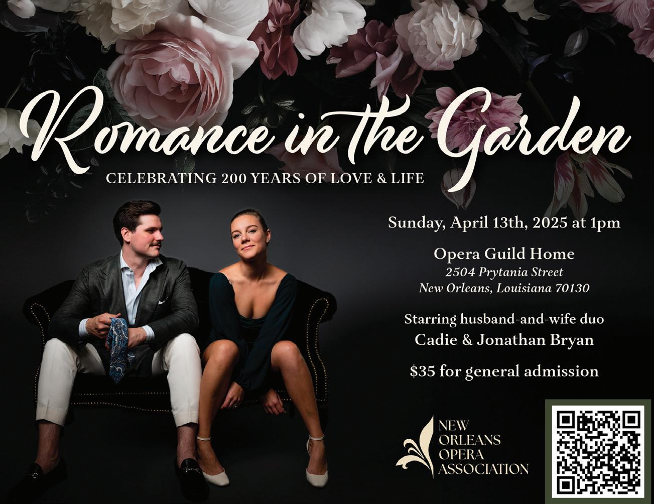 See you APRIL 13 for Romance in the Garden with Cadie and Jonathan Bryan 1pm, The Opera Guild Home, 2504 Prytania St.