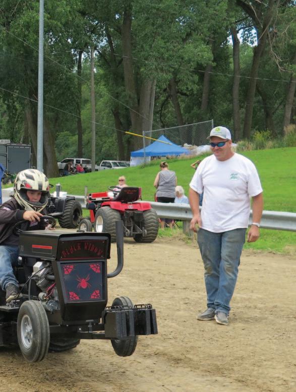 Left: Dustin and Becky Topp’s sons, Alan and Cameron, compete in the garden tractor pull at Wisner in June.