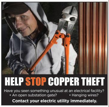 • Help spread the word about the deadly consequences that can result from trying to steal copper or aluminum wire.