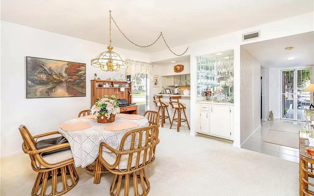 Experience the epitome of refined living amidst the picturesque landscapes of Southwest Florida in this exquisite Marbella Isle villa home, where every detail exudes elegance and charm. Poised to captivate with its soaring western lake vistas, this residence, akin to a meticulously crafted model, has been tenderly cared for by its original owner. Step inside to discover a sanctuary of sophistication where the seamless fusion of form and function awaits. Enhancements abound, from the timeless allure of wood flooring that gracefully flows throughout to the culinary haven of a model kitchen adorned with stainless steel appliances, beckoning amateur chefs and connoisseurs alike.