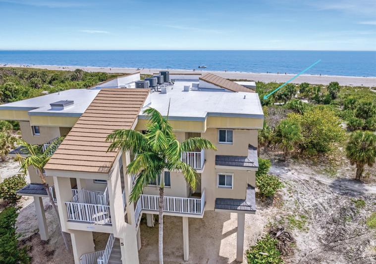 Rarely and first time available in 30 years ~ this PENTHOUSE on the sand offers 18 ft cathedral ceilings, 2 skylights, never-ending unobstructed views of the Gulf & Clam Bay on a large wrap around lanai! 2,484 SF under air. Private rooftop terrace. Two pets allowed.