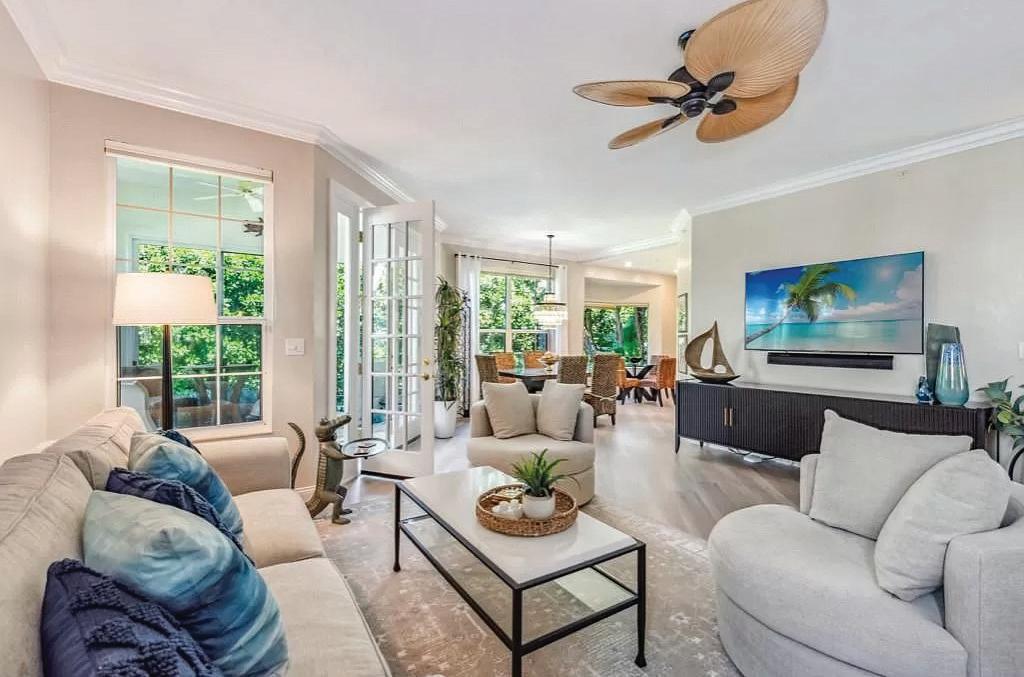 This bright, charming and spacious end unit condo is nestled within the Naples Sandpiper Bay Club where it is beautifully situated adjacent to Royal Harbor, just south of 5th Avenue, offering world class dining, shopping, and all the unique amenities Old Naples provides. The delightful condo enjoys nature views of the wooded preserve in a peaceful setting, just minutes from the enchanting pristine beaches. The open kitchen features granite countertops and a laundry/ utility room with extensive shelving and ample storage space. The primary bedroom suite boasts a private bath and walk-in closet. The community provides waterfront canal access with a private dock and boat slips for sale or lease when available for leisurely boat trips to Naples Bay and the Gulf of Mexico. The community amenities include two separate heated pools, an elevator in each building, a clubhouse, patio picnic tables, BBQ grills, and much more, making this one of the most attractive and affordable communities in Naples.